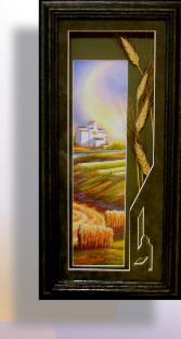 The smaller landscape images can be framed in a shadow box with wheat stalks mounted alongside.